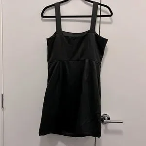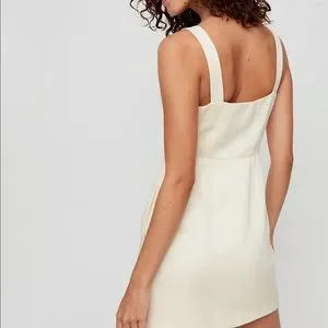 This is a shift-style mini dress with a fitted bodice. It's made with a soft, sustainable TENCEL®-linen blend fabric that drapes beautifully