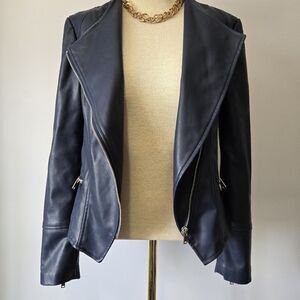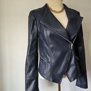 Never worn navy moto jacket with a silver asymmetrical zipper closure. Zippered pockets.