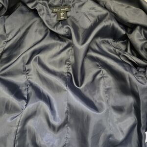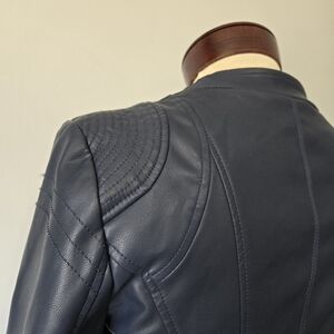 WILLI SMITH Navy Faux Leather Fitted Moto Jacket. Size Small