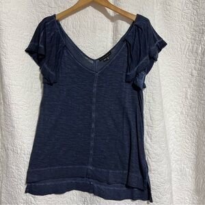 WILLIAM RAST DEANNE Blue Distressed Short Flutter Sleeve Top, Size Medium
