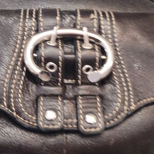 Amazing leather handbag in great condition featuring zip closure multiple inner pockets and outer pocket as well nice buckle very good quality and shape!14x10x3 in