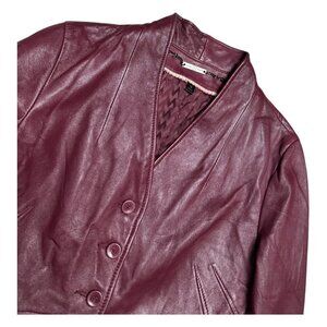With a versatile size medium fit, this jacket is ideal for a range of occasions, from a casual day out to more formal business settings. The long sleeves, zip closure, and solid pattern make it a practical choice for cooler seasons like fall, spring, and winter. Whether you're headed to the office, traveling, or enjoying a night out, this Wilsons Leather jacket is a stylish addition to your attire.
