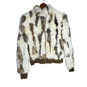 WILSON'S LEATHER Tri-Color Maxima Rabbit Fur Coat Size Medium FLAWED