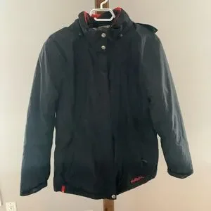 Super cozy, super versatile 3-in-1 jacket. Zip out liner becomes a light spring jacket, wear the shell only when medium cold, and both together for those really cold data. Detachable hood.