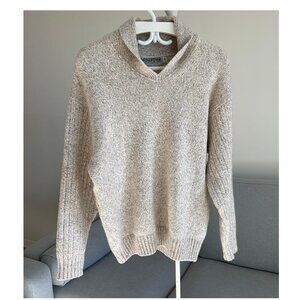 WINDRIVER Beige Sweater Wool Cotton Blend V Neck Made in Canada Men's Large