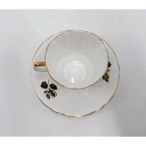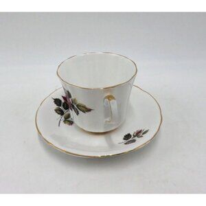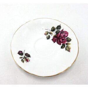 Windsor Cup and Saucer with purple-red rose theme.