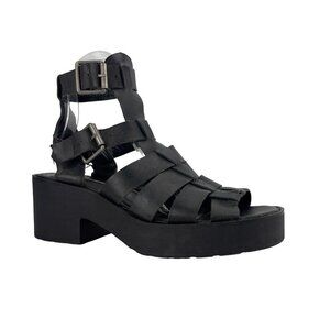 WINDSOR SMITH Block Heels Platform Two Ankle Straps Gladiator / Fischerman Black Sandals Sz 6