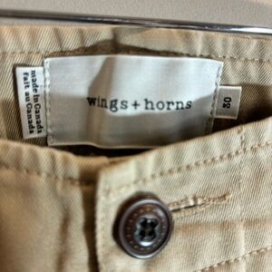WINGS + HORNS Sz 30 Tokyo Khaki Chino Ankle Length Tapered Leg Trousers Pants.