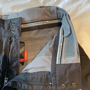 Great condition. Waist size 32" with inset velcro adjustment. Inseam 30". High quality velcro pockets with zips for extra safekeeping. Thigh vents and zipper adjustment for boots.
