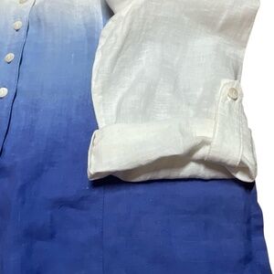 WITTEVEEN 100% Linen Hombre Long Sleeve Tunic Split Vee Roll Tab Sleeves Sz 12