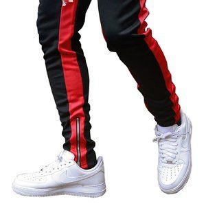 WOCACHI Men's Black & Red Side Stripe Track Pants with Zipper Pockets – NEW