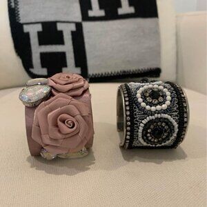 Woman’s adjustable cuff bracelets. rosettes, bead work, rhinestones and lace. sold together.