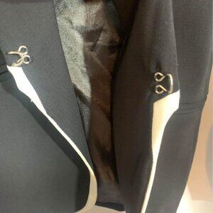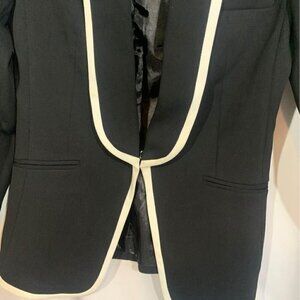 Woman’s blazer (black with white piping). Gorgeous shape. Pockets. Size small. Lined.