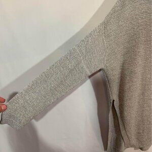 WOMAN’S gray and white tunic length, side split, crew neck sweater. Size…