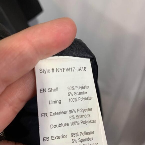 Woman’s jacket. Ruffle hem sleeve. Crew neck. Open front. Lined. Size small. Looks great dressed up for the office or over jeans and a t shirt! Such a fun coat.