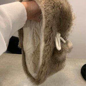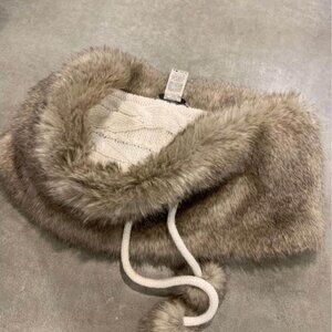 Woman’s neck circle faux fur scarf. Knitted interior. Tie to adjust to your likeness.