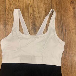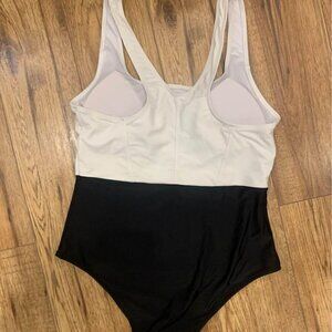 WOMAN’S one piece swimsuit. Black and white. Racerback. White portion is lined.