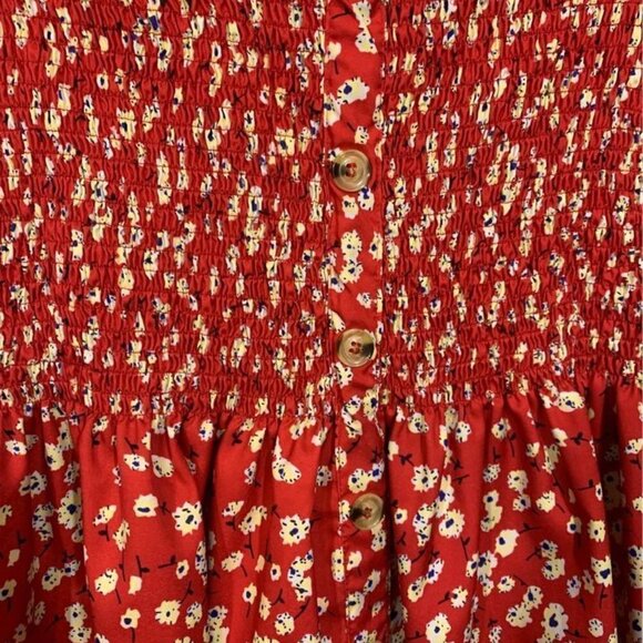 Woman’s peplum strapless floral top. Size Large. Red. New condition.