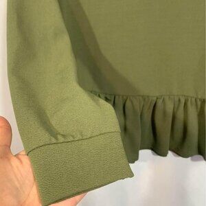 Woman’s ruffle hem top. Poly/spandex blend. Army green. Crew neck. Size large. NWOT.