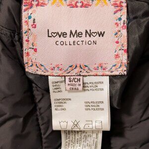WOMEN Gray Padded Hooded Winter Jacket Sz(S) - Quilted Drawstring "Love Me Now"