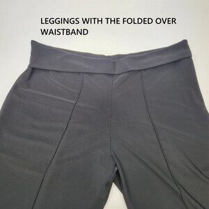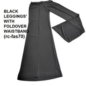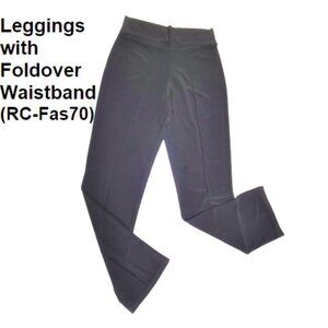 Women's Black Leggings with Traveler's Crease and Fold-Over Waistband