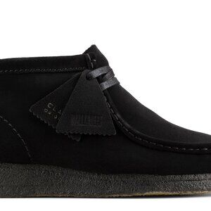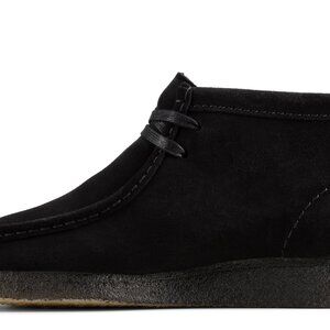The iconic Clarks Wallabee Boot, faithfully made with a soft suede upper and a genuine crepe outsole. Its leather lining and sockliner surround the foot in soft comfort, and an airy EVA midsole lightens its weight. Pairs effortlessly with jeans and a top for a fast, no-fuss look.