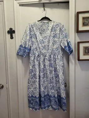 WOMENS DRESS FLORAL, SLEEVES BUTTON TO THE FRONT , V NECK .. NEW!!