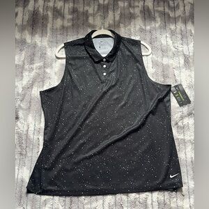 The Dry Sleeveless Dot Print Polo is brand new this season from Nike. This technical polo is built with Dri-FIT technology which helps you stay dry and comfortable while the modified racerback covers a traditional bra without sacrificing your range of motion. This polo is finished with a 3-button placket and subtle, galaxy inspired print.
