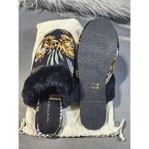 WOMENS PRINTFRESH UNTAMED TIGER VELVET FAUX FUR SLIPPERS - SIZE 7 - BLACK/GOLD I
