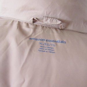 WOMEN'S PUFFER COAT. AMAZON ESSENTIALS. BEIGE. XL. NWT. 100% NYLON. MACHINE WASHABLE. GREAT COAT FOR THIS WINTER. LIGHT WEIGHT AND WARM. TWO DEEP EXTERIOR POCKETS AND ONE INTERIOR ZIPPERED POCKET. SHOULDERS 17". CHEST..MEASURED ACROSS BACK ARMPIT TO ARMPIT 26". SLEEVE LENGTH 27". COAT LENGTH 44". THE COAT WAS A CHRISTMAS GIFT BUT IS TOO BIG FOR ME.