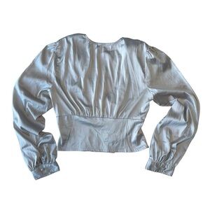 - The blouse is a cropped fit.