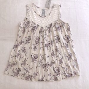 SOFT TEE SHIRT MATERIAL WITH BEAUTIFUL LACE AREAS ON FRONT AND BACK OF TOP