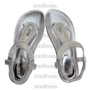 WOMENS Size 10 Silver Sequin Elastic Strap Toe Post Cushioned Sandals NEW