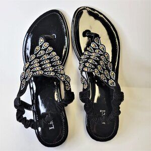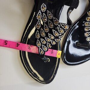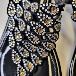 WOMENS Size 9 Black and Gold Sandals Peacock Motif Slippers Flats Shoes - NEW