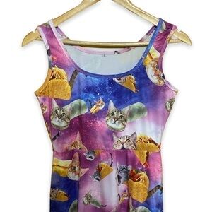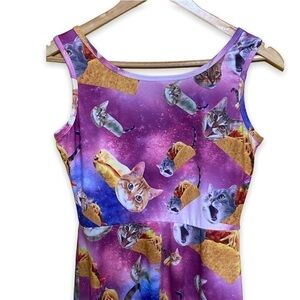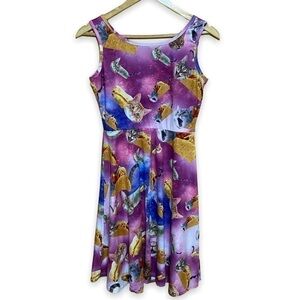 WOMEN’S Sleeveless Taco Burrito Outer Space Cat Dress Size S