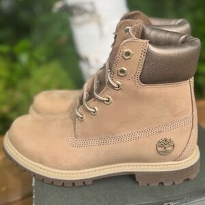 NWOB VERY UNIQUE MODEL (Limited edition ) OF TIMBERLAND BOOTS...NATURAL NUBUCK COLOR. BRONZE METALLIC LOGO.