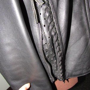 GREAT LOOKING WILLIE G HARLEY DAVIDSON LEATHER JACKET SIZE MEDIUM. VERY GOOD CONDITION. WORN SPARINGLY. THE REMOVABLE WINTER VEST HAS 2 MALFUNCTIONING SNAP FASTENERS. THIS DOES NOT POSE A PROBLEM WITH FITTING THE LINER ITSELF. SHOULDER MEASUREMENTS 17". SLEEVE LENGTH 26" (CAN BE TURNED UP IF NECESSARY). ARMPIT TO ARMPIT ACROSS BACK 21/22". JACKET LENGTH 23 INCHES. A VINTAGE JACKET FROM THE 90'S HAS SEEN LITTLE USE AND WILL PROVIDE GOOD LOOKS AND PROTECTION FOR YEARS TO COME.