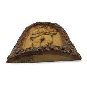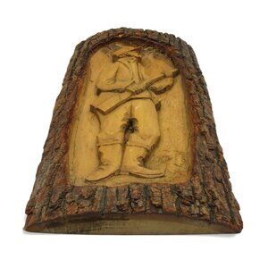 WOOD Carving with Tree Bark Wall Art Hunter Rifle Decor from Canada 14 inches