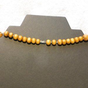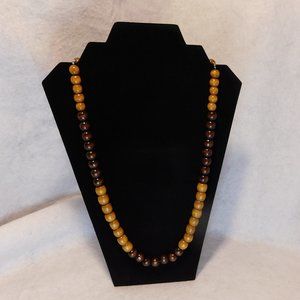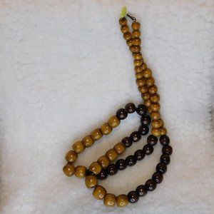 WOODEN BEAD 2 Tones Necklace Adjustable 30 inches