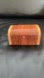Two tone small wooden box, hand made in a treasure chest shape. Hinged lid. Green felt interior. Stamped on the bottom it says "CJ Smit 02 2008". Use this as a jewelry box or presentation box for a gift.