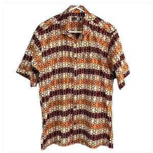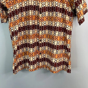 WOODIN Mens African Tribal Print Button Shirt Brown Orange Short Sleeve Size XL