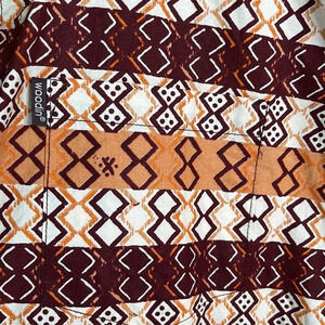 Mens brown, orange and white Woodin African Ghana Tribal Pattern Print Button Up shirt.