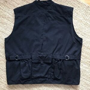 Plus size vest in excellent pre loved condition. See pics for measurements and various pockets. Full front zip, back vented seam, cinch at back to ensure proper fit.