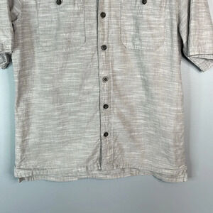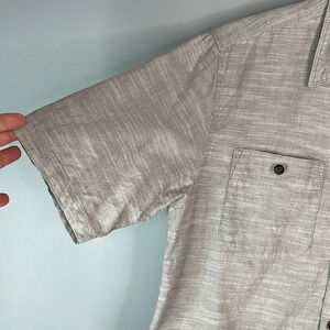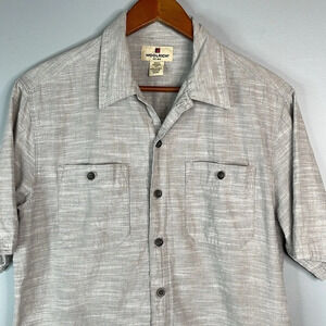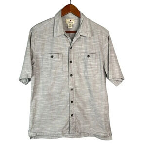 WOOLRICH Mens Grey Marled Chambray Button Up Shirt Short Sleeves Cotton Preppy S