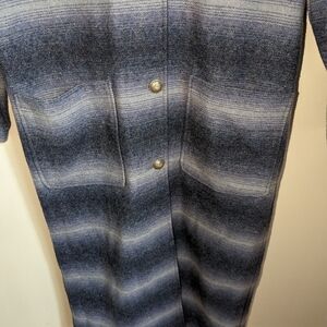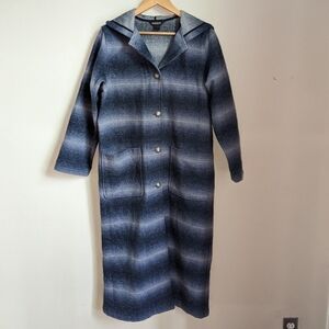 WOOLRICH VINTAGE Blue White Plaid Oversized Wool Long Lined Shaket Blanket Coat