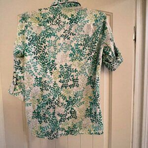 WOOLRICH Vintage blouse floral print in tones of green and white. Women size M.