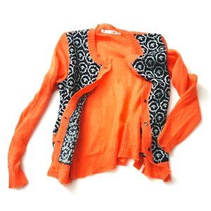 WOOLRICH Wool Mohair Sheep Motif Cardigan Orange Black