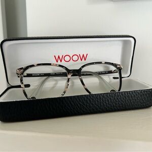 WOOW frames Fire 2 in marble black and rose. I had these for 6 months before I had Lasik so these have my prescription in them. Excellent condition.
