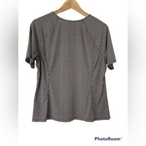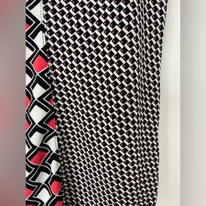 WORTHINGTON BLACK/WHITE/CORAL GEOMETRIC PATTERN BLOCKED TOP, LARGE