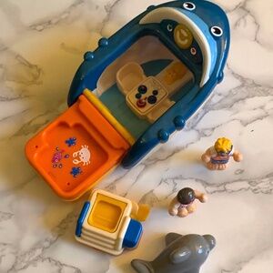 Flip Danny's Diving Adventure deck open to reveal his secret furnished cabin and his Play Friends love diving off his diving board accessory. Scoop water into the cabin and pour it out the front. Danny’s friendly floating dolphin Animal Friend completes this fantastic bathtime set.